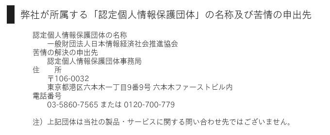 【お問い合わせ】 個人情報の取り扱いに関する苦情、お問い合わせ、確認等につきましては、下記窓口まで お願いいたします。